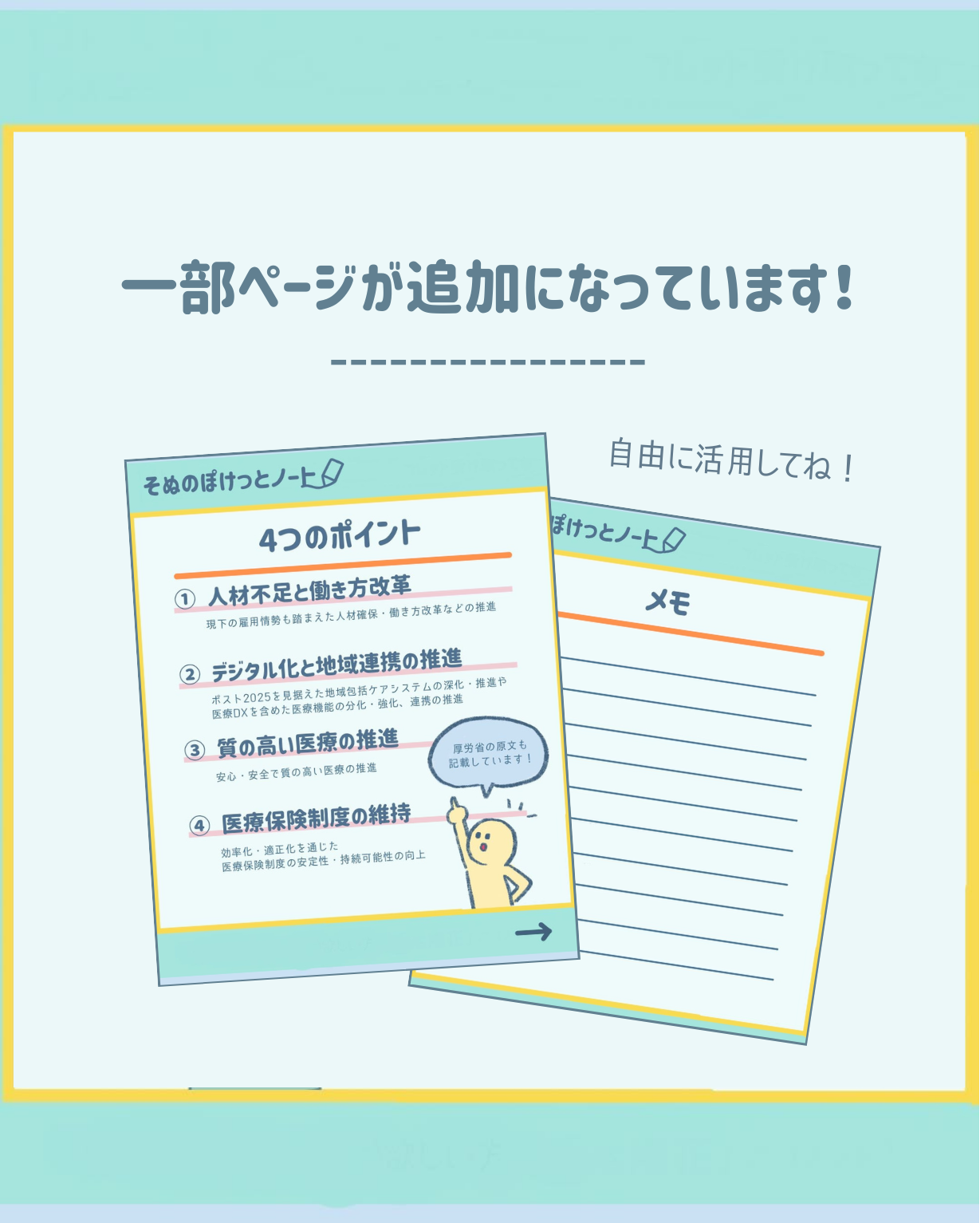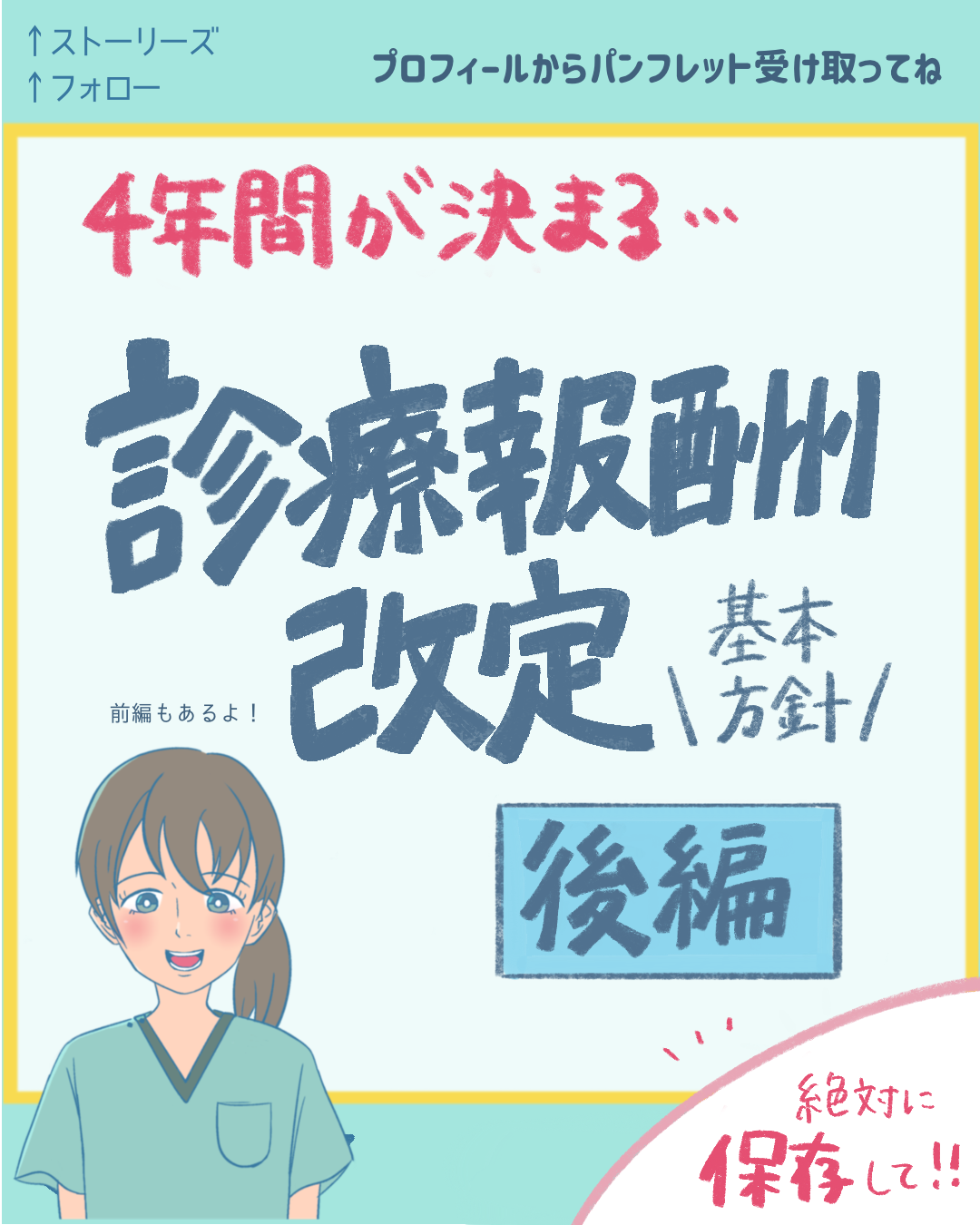 後編の内容「質の高い医療の推進」と「医療保険制度の維持」について触れた投稿のPDFです。以下リンクから受け取ってください。